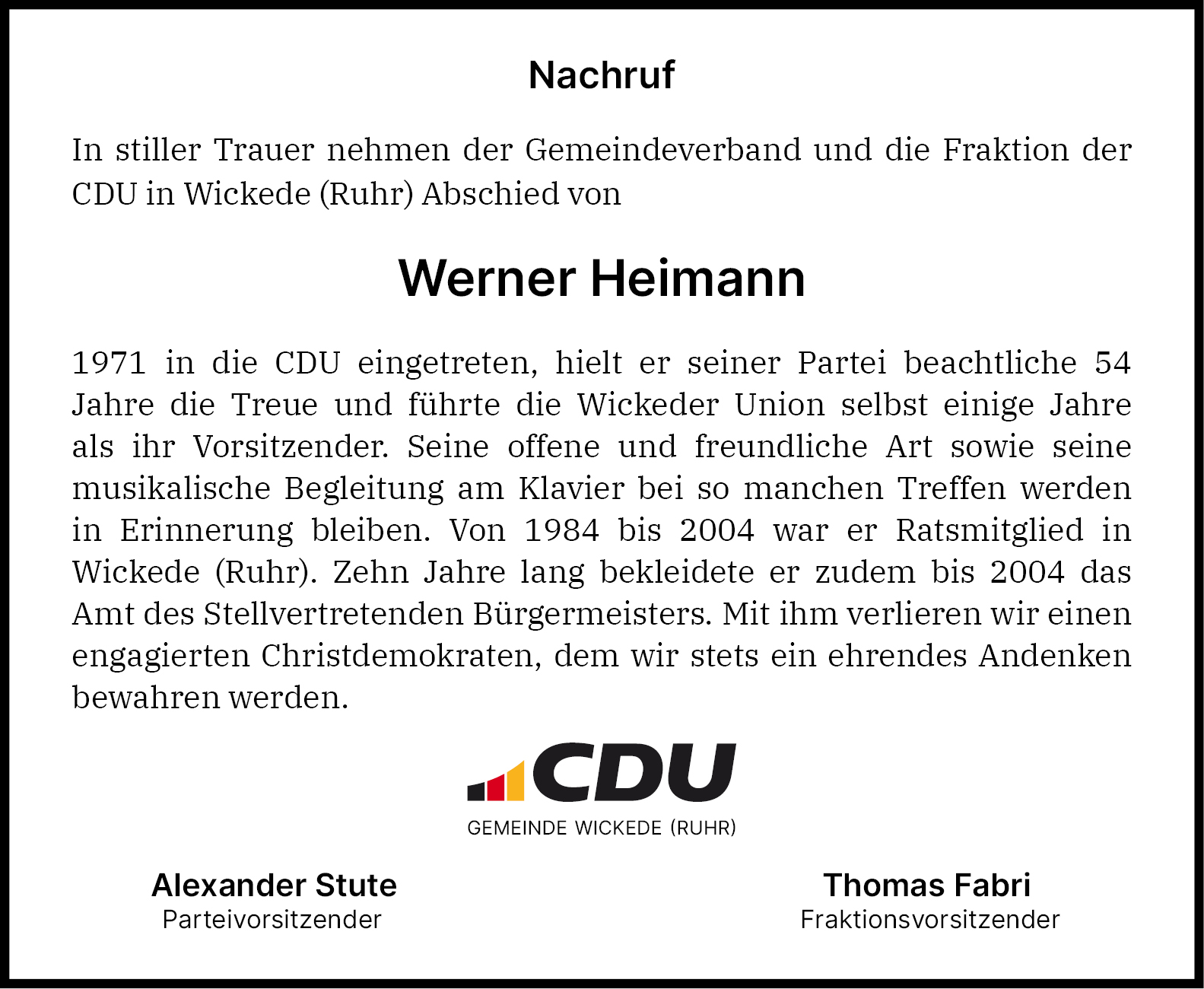 In stiller Trauer nehmen wir Abschied von Werner Heimann.