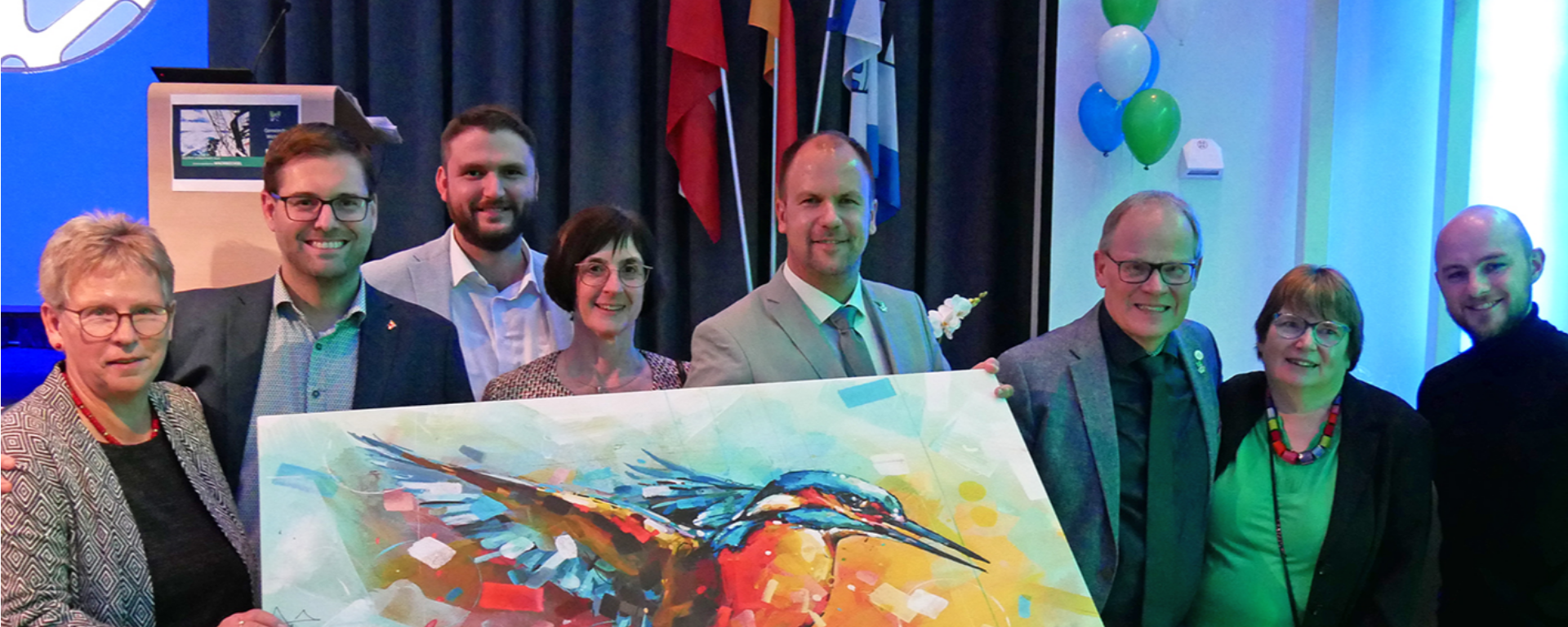 Zusammen mit seinem Nachfolger Alexander Heine überreichte unsere CDU-Fraktion zum Dank ein Kunstwerk mit einem Eisvogel eines niederländischen Malers.
