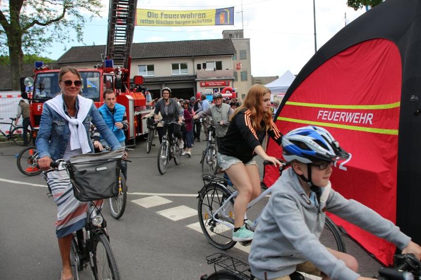 Zwei Hüpfburgen, das Zielspritzen, Laufrad und Bobby- Car, die tolle Rollenrutsche, Cafeteria, Imbiss und Getränkestand, dazu klingende Begleitung vom Musik- und vom Spielmannszug - die Veranstalter hatten ein Riesenprogramm vorbereitet. Dazu zählten natürlich auch der Fahrradtag mit der CDU. Rund 80 Teilnehmer starteten vom Feuerwehrfest aus zur „Tour de Ruhr“ mit Stempelstationen und Obstausgabe unterwegs und der Verlosung von fünf Sachpreisen, zudem gab es einen Christopherus-Aufkleber und eine Wertmarke als Essenszuschuss.